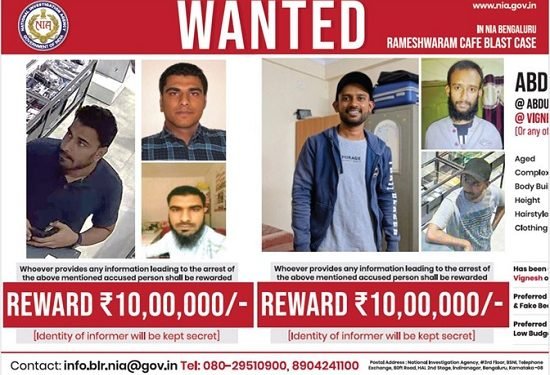 ಇಬ್ಬರು ಶಂಕಿತರ ಸುಳಿವು ಲಭಿಸಿದ ಕೂಡಲೇ 080–29510900, 8904241100 ಹಾಗೂ ಇ–ಮೇಲ್ ವಿಳಾಸ info.blr.nia@gov.inಗೆ ಮಾಹಿತಿ ನೀಡಬಹುದು ಅಥವಾ ವಿಳಾಸ: ರಾಷ್ಟ್ರೀಯ ತನಿಖಾ ದಳ, 3ನೇ ಮಹಡಿ, ಬಿಎಸ್ಎನ್ಎಲ್ ಟೆಲಿಫೋನ್ ಎಕ್ಸ್ಚೆಂಜ್, 80 ಅಡಿ ರಸ್ತೆ, ಎಚ್ಎಎಲ್ 2ನೇ ಹಂತ, ಇಂದಿರಾನಗರ, ಬೆಂಗಳೂರು 08 –ಇಲ್ಲಿಗೆ ಕಳುಹಿಸಬಹುದು ಎಂದು ಅಧಿಕಾರಿಗಳು ಕೋರಿದ್ದಾರೆ.