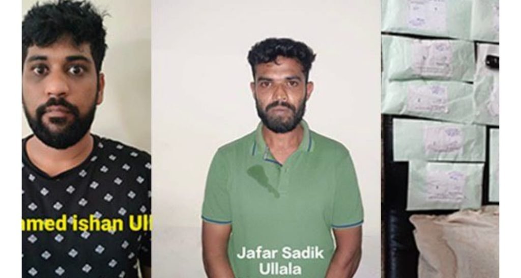 ಉಳ್ಳಾಲ ಬಸ್ತಿಪಡ್ಪು ನಿವಾಸಿ ಮೊಹಮ್ಮದ್ ಇಶಾನ್ (35), ಉಳ್ಳಾಲ ನಿವಾಸಿ ಜಾಫರ್ ಸಾಧಿಕ್ (35) ಬಂಧಿತರು. ಆರೋಪಿಗಳು ಬೆಂಗಳೂರಿನಿಂದ ಮಾದಕ ವಸ್ತುಗಳನ್ನು ತಂದು ಮಂಗಳೂರಿನಲ್ಲಿ ಕಾಲೇಜು ವಿದ್ಯಾರ್ಥಿಗಳಿಗೆ ಮತ್ತು ಸಾರ್ವಜನಿಕರಿಗೆ ಮಾರಾಟ ಮಾಡಿ ಹಣ ಸಂಪಾದನೆ ಮಾಡುತ್ತಿದ್ದರು. 9,00,000/- ರೂ. ಮೌಲ್ಯದ 407 ಗ್ರಾಂ ನಿಷೇಧಿತ MDMA ಮಾದಕ ವಸ್ತು, ಡಿಜಿಟಲ್ ತೂಕ ಮಾಪನ, ಮೊಬೈಲ್ ಫೋನ್ ಗಳು ಹಾಗೂ ಕೃತ್ಯಕ್ಕೆ ಬಳಸಿದ ಕಾರನ್ನು ವಶಪಡಿಸಿಕೊಂಡಿದ್ದಾರೆ.