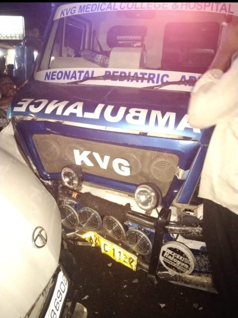 ಪುತ್ತೂರು: ಮಂಗಳೂರಿಗೆ ರೋಗಿಯನ್ನು ಕರೆದೊಯ್ಯುತ್ತಿದ್ದ ಆ್ಯಂಬುಲೆನ್ಸಿಗೆ ನ್ಯಾನೋ ಕಾರು ಡಿಕ್ಕಿ ಹೊಡೆದಿದ್ದು, ನ್ಯಾನೋ ಕಾರಿಗೆ ಮಂಗಳೂರಿನಿಂದ ಬರುತ್ತಿದ್ದ ಮತ್ತೊಂದು ಕಾರು ಢಿಕ್ಕಿಯಾದ ಘಟನೆ ಕಬಕದಲ್ಲಿ ನಡೆದಿದೆ.