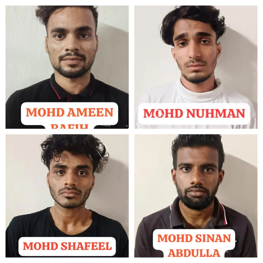 ಬಿಜೈ ನಿವಾಸಿ ಮೊಹಮ್ಮದ್ ಅಮೀನ್ ರಾಫಿ(23), ಬಂಡ್ಸಾಲೆ ಅಡ್ಡೂರು ನಿವಾಸಿ ಮೊಹಮ್ಮದ್ ಸಿನಾನ್ ಅಬ್ದುಲ್ಲಾ(23), ಬಂದರ್ ಬಾವಾ ಮಹಲ್ ನಿವಾಸಿ ಮೊಹಮ್ಮದ್ ನೌಮಾನ್(22), ಉಳ್ಳಾಲದ ಬೋಳಿಯಾರ್ ನಿವಾಸಿ ಮೊಹಮ್ಮದ್ ಸಫೀಲ್(23) ಬಂಧಿತ ಆರೋಪಿಗಳು.6,50,000/- ರೂ ಮೌಲ್ಯದ 270 ಗ್ರಾಂ ನಿಷೇಧಿತ ಮಾದಕ ವಸ್ತು ಎಂಡಿಎಂಎ, 4 ಮೊಬೈಲ್ ಫೋನ್ ಗಳು, ಟೊಯೊಟಾ ಕೊರೊಲ್ಲಾ ಕಾರು, ಡಿಜಿಟಲ್ ತೂಕ ಮಾಪಕವನ್ನು ಸ್ವಾಧೀನಪಡಿಸಿಕೊಳ್ಳಲಾಗಿದೆ. ವಶಪಡಿಸಿಕೊಂಡ ಸೊತ್ತಿನ ಒಟ್ಟು ಮೌಲ್ಯ ರೂ. 14,85,500/- ಆಗಬಹುದು. ಈ ಬಗ್ಗೆ  ಸೆನ್ ಕ್ರೈಂ ಪೊಲೀಸ್ ಠಾಣೆಯಲ್ಲಿ ಪ್ರಕರಣ ದಾಖಲಾಗಿರುತ್ತದೆ.
