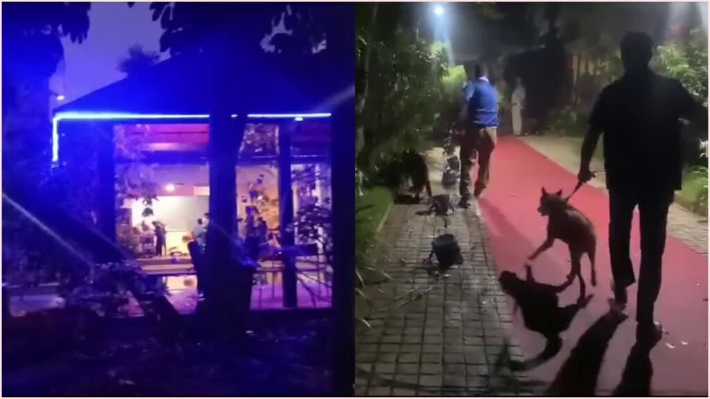 ಅವಧಿ ಮೀರಿ ರೇವ್ ಪಾರ್ಟಿ ನಡೆಯುತ್ತಿರುವ ಬಗ್ಗೆ ಸೂಚನೆ ಸಿಕ್ಕಿದ್ದು ಸಿಸಿಬಿ ಪೊಲೀಸರು ದಾಳಿ ನಡೆಸಿದ್ದಾರೆ. ಅಲ್ಲಿ ಮಾದಕ ವಸ್ತುಗಳಿಗಾಗಿ ಹುಡುಕಾಟ ನಡೆಸಿದ್ದಾರೆ. ಈ ರೇವ್ ಪಾರ್ಟಿಯಲ್ಲಿ ಜನಪ್ರಿಯ ಡಿಜಿಎಗಳಾದ ರಾಬ್ಸ್, ಕಾಯ್ವಿ, ಬ್ಲಡಿ ಮಸ್ಕರಾ ಮುಂತಾದವರೂ ಭಾಗಿಯಾಗಿದ್ದರು ಎನ್ನಲಾಗಿದೆ. ಎಲೆಕ್ಟ್ರಾನಿಕ್ ಸಿಟಿ ಪೊಲೀಸ್ ಠಾಣೆಯಲ್ಲಿ ದೂರು ದಾಖಲಾಗಿದ್ದು, ತನಿಖೆ ನಡೆಸಲಾಗುತ್ತಿದೆ. ನಾರ್ಕೊಟಿಕ್ಸ್ ಸ್ನಿಫರ್ ಡಾಗ್ ಗಳಾದ ಭೂಮಿ, ರಾಣಾ , ರಾಮು ಮತ್ತು ಮೈಲು ಎಂಬ ಶ್ವಾನದಳದಿಂದ ಸ್ಥಳ ಪರಿಶೀಲನೆ ನಡೆಸಲಾಗಿದೆ.