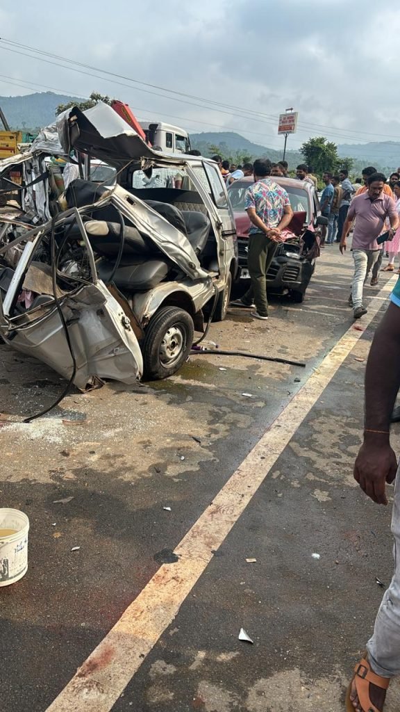 ಮೆಸ್ಕಾಂ ಲಾರಿ ಮತ್ತು ಓಮ್ನಿ ನಡುವೆ ಮುಖಾಮುಖಿ ಢಿಕ್ಕಿ ಸಂಭವಿಸಿದ್ದು, ಹಿಂಬದಿಯಲ್ಲಿದ್ದ ಆಲ್ಟೋ ಕೂಡ ಓಮ್ನಿ ಗೆ ಗುದ್ದಿ ಸರಣಿ ಅಪಘಾತ ನಡೆದಿದೆ.