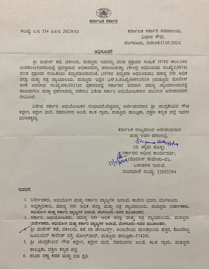 ಅಕ್ಷಯ್ ಕಲ್ಲೇಗ ಹತ್ಯೆ ಪ್ರಕರಣ ; ಆರೋಪಿಗಳಿಗೆ ಮತ್ತೊಂದು ಶಾಕ್.. ವಿಶೇಷ ಸರಕಾರಿ ಅಭಿಯೋಜಕರಾಗಿ ಖ್ಯಾತ ಹಿರಿಯ ನ್ಯಾಯವಾದಿ ಮಹೇಶ್ ಕಜೆ ನೇಮಕ.