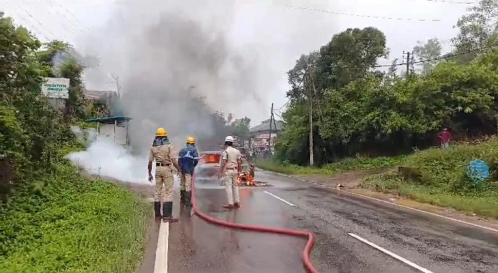 ಮಡಿಕೇರಿ: ನಗರದ ಹೊರವಲಯದ ಸಂಪಿಗೆಕಟ್ಟೆ ಬಳಿಯ ಮೈಸೂರು– ಮಂಗಳೂರು ಹೆದ್ದಾರಿಯಲ್ಲಿ ಕಾರೊಂದು ಬೆಂಕಿಗಾಹುತಿಯಾಗಿ, ತನ್ನಿಂದತಾನೆ ಚಲಿಸಿ ಕೆಲಕಾಲ ಆತಂಕ ಸೃಷ್ಟಿಸಿತು. ಅಗ್ನಿಶಾಮಕಪಡೆಯ ಸಿಬ್ಬಂದಿ ಸ್ಥಳಕ್ಕೆ ಬಂದು ಬೆಂಕಿ ನಂದಿಸುವವರೆಗೂ ಇಲ್ಲಿ ವಾಹನ ಸಂಚಾರ ಸ್ಥಗಿತಗೊಂಡಿದ್ದು, ಮೈಸೂರು ಮತ್ತು ಮಂಗಳೂರು ಕಡೆಗೆ ಭಾರಿ ಸಂಖ್ಯೆಯ ವಾಹನಗಳು ನಿಂತು, ವಾಹನ ದಟ್ಟಣೆ ಉಂಟಾಗಿತ್ತು.