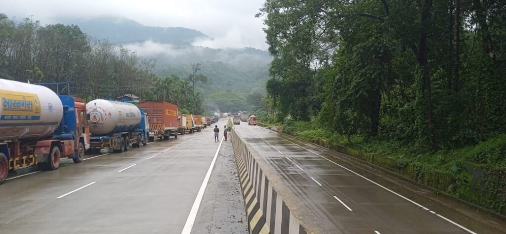 ಗುಡ್ಡ ಜರಿತದಿಂದ ಹೆದ್ದಾರಿಯ ಎರಡೂ ಬದಿಯಲ್ಲೂ ಕಿಲೋಮೀಟರ್ ಗಟ್ಟಲೆ ವಾಹನಗಳು ನಿಂತಿದ್ದು ಸವಾರರು ಪರದಾಡುವಂತಾಗಿದೆ.