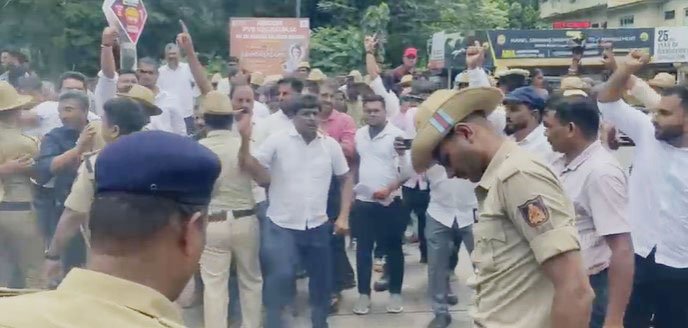 ಮಂಗಳೂರು ; ರಾಜ್ಯಪಾಲರ ನಡೆ ಖಂಡಿಸಿ ಮಂಗಳೂರಿನಲ್ಲಿ ಕಾಂಗ್ರೆಸ್ ನಿಂದ ಬೃಹತ್ ಪ್ರತಿಭಟನೆ,ಬಸ್ಸಿಗೆ ಕಲ್ಲು ತೂರಾಟ.