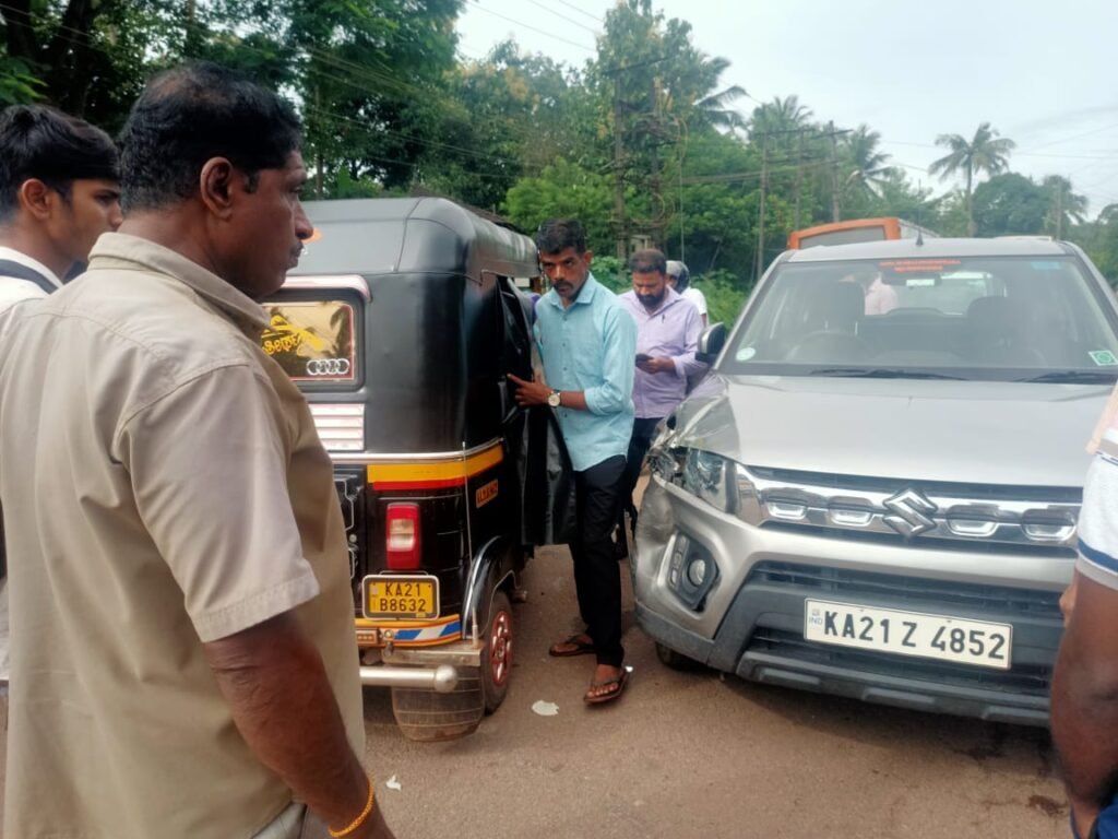 ಪುತ್ತೂರು: ಬೊಳುವಾರು – ಹಾರಾಡಿ ನಡುವೆ ರಿಕ್ಷಾ ಹಾಗೂ ಬ್ರೇಜಾ ಕಾರಿನ ನಡುವೆ ಅಪಘಾತ ಸಂಭವಿಸಿದ ಘಟನೆ ಗುರುವಾರ ಸಂಜೆ ನಡೆದಿದೆ.