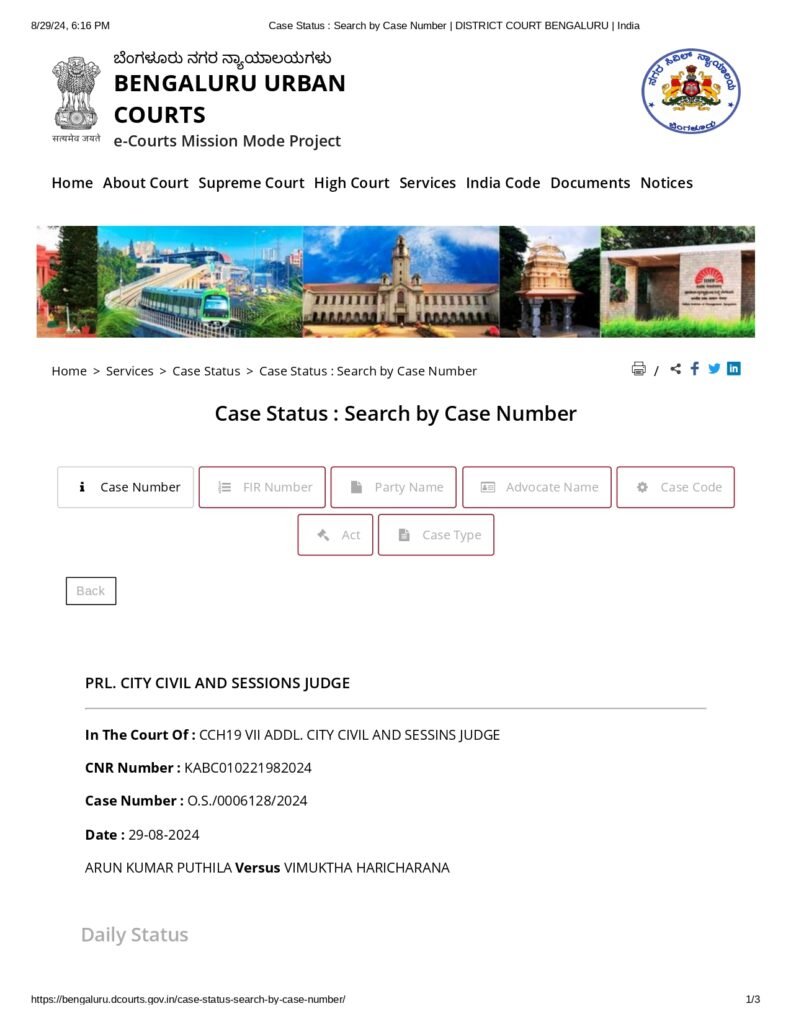 ವಿಮುಕ್ತ ಹರಿಚರಣ್ ಪ್ರಕರಣದ ಪ್ರತಿವಾದಿಯಾಗಿದ್ದಾರೆ. ಪ್ರಕರಣದ ಪ್ರತಿವಾದಿಗಳು ಮತ್ತು ಅವರಿಗೆ ಸಂಬಂಧಿಸಿದ ಯಾವುದೇ ವ್ಯಕ್ತಿಗಳು ದಾವೆಯ ಮುಂದಿನ ವಿಚಾರಣೆಯವರೆಗೆ ದೂರುದಾರ ಪುತ್ತಿಲರವರ ಮಾನಹಾನಿಯುಂಟು ಮಾಡುವ ಯಾವುದೇ ಸುದ್ದಿಗಳನ್ನು ಪ್ರಸಾರ, ಪ್ರಕಟ ಮತ್ತು ಹಂಚಿಕೆ ಮಾಡಬಾರದು. ಎಂದು ನ್ಯಾಯಮೂರ್ತಿಗಳು ಆದೇಶಿಸಿದ್ದಾರೆ. ಮಧ್ಯಂತರ ಅರ್ಜಿಗೆ ಸಂಬಂಧಿಸಿದಂತೆ ಎಲ್ಲ ಪ್ರತಿವಾದಿಗಳಿಗೆ ನೋಟಿಸ್ ಮತ್ತು ಸಮನ್ಸ್ ಜಾರಿಗೊಳಿಸಲು ಸೆ 24ಕ್ಕೆ ವಿಚಾರಣೆಯನ್ನು ಮುಂದೂಡಿದ್ದಾರೆ.