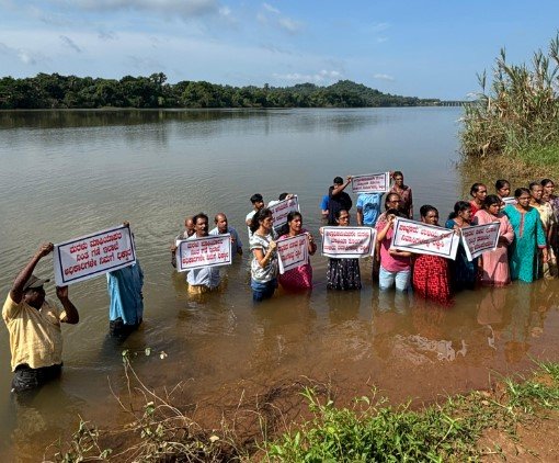ಮಂಗಳೂರು : ಪಾವೂರು ಉಳಿಯ ದ್ವೀಪದಲ್ಲಿ ನಡೆಯುತ್ತಿರುವ ಅಕ್ರಮ ಮರಳುಗಾರಿಕೆ ವಿರುದ್ಧ ಜಿಲ್ಲಾಡಳಿತದ ನಿರ್ಲಕ್ಷ್ಯವನ್ನು ಖಂಡಿಸಿ ಇಲ್ಲಿನ ನಿವಾಸಿಗಳು ಸೆ.15ರ ಭಾನುವಾರ ನೇತ್ರಾವತಿ ನದಿಯಲ್ಲಿ ವಿನೂತನವಾಗಿ ಪ್ರತಿಭಟನೆ ನಡೆಸಿದರು. ಅಕ್ರಮ ಚಟುವಟಿಕೆಗಳನ್ನು ತಡೆಯಲು ಕೂಡಲೇ ಕ್ರಮ ಕೈಗೊಳ್ಳುವಂತೆ ಆಗ್ರಹಿಸಿ ಪ್ರತಿಭಟನಾಕಾರರು ನದಿಯಲ್ಲಿ ಭಾಗಶಃ ಮುಳುಗಿದರು.ಇದು ವಿಧಾನ ಸಭಾ ಅಧ್ಯಕ್ಷ ಯು.ಟಿ ಖದರ್ ರವರ ಕ್ಷೇತ್ರವಾಗಿದ್ದು ಕಾಂಗ್ರೆಸ್ ಸರಕಾರ ಅಧಿಕಾರಕ್ಕೆ ಬಂದ ಮೇಲೆ ಮರಳು ದಂದೆಯಿಂದ ನದಿಯ ದಡದಲ್ಲಿರುವ ಪ್ರದೇಶಗಳು ಮಾಯವಾಗಿದೆಯೆಂದು ಸ್ಥಳೀಯರು ಮಾಧ್ಯಮಗಳಿಗೆ ತಿಳಿಸಿದ್ದರು ಆದರೆ ಜಿಲ್ಲಾಧಿಕಾರಿಗಳಿಗೆ ಮನವಿ ಮಾಡಿದ್ದರು ರಾಜಕೀಯ ಪ್ರಭಾವದಿಂದ ಯಾವುದೇ ಪ್ರಯೋಜನವಾಗಿಲ್ಲವೆಂದು ಸ್ಥಳೀಯ ನಿವಾಸಿಗಳು ಆರೋಪಿಸಿದ್ದರು .