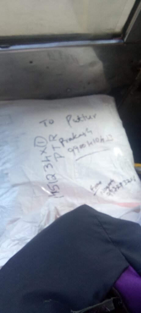 ಪುತ್ತೂರಿನ ಪ್ರಕಾಶ್ ಎನ್ನುವವರಿಗೆ ನಾಗೇಶ್ ಎನ್ನುವ ವ್ಯಕ್ತಿ ಇಂದ ಕಳ್ಳಿಸುವ ಲಗೇಜ್ ಇದಾಗಿದ್ದು. ಸಾರ್ವಜನಿಕರಿಗೆ ksrtc busಗಳಲ್ಲಿ ತೊಂದರೆ ಕೊಟ್ಟು ಕಾರ್ಗೋ ದುಡ್ಡನ್ನು ಉಳಿಸಲು ಇದೊಂದು ಕಳ್ಳ ದಾರಿಯಾಗಿದೆ.
