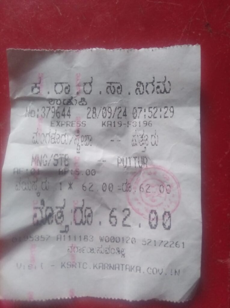 Ka19f3196 ನ ksrtc ಬಸ್ನಲ್ಲಿ ಕಂಡು ಬಂದ ದೃಶ್ಯ ವಿದು.