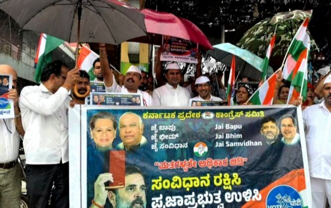 ಪ್ರತಿಭಟನೆಯನ್ನು ಉದ್ದೇಶಿಸಿ ಕೆಪಿಸಿಸಿ ಪ್ರಧಾನ ಕಾರ್ಯದರ್ಶಿ ರಕ್ಷಿತ್ ಶಿವರಾಂ ಮಾತನಾಡಿ, 2024ರ ಸಾರ್ವತ್ರಿಕ ಚುನಾವಣೆಗಳಲ್ಲಿ ಬೃಹತ್​​ ಅಕ್ರಮ ನಡೆದಿದ್ದು, ಬಿಜೆಪಿ ಚುನಾವಣಾ ಆಯೋಗವನ್ನು ಬಳಸಿಕೊಂಡು ವ್ಯವಸ್ಥಿತವಾಗಿ ಈ ಅಕ್ರಮ ನಡೆಸಿದೆ.