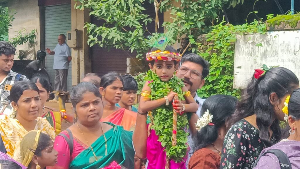 ಕೃಷ್ಣ ರಾಧೆಯ ವೇಷ ಧರಿಸಿದ ಸಾವಿರಾರು ಪುಟಾಣಿಗಳ ವೈಭವದ ಮೆರವಣಿಗೆಯಲ್ಲಿ ಮಕ್ಕಳ ಪೋಷಕರು ಜತೆಯಾಗಿ ಸಾಗಿದರು. ಶ್ರೀಕೃಷ್ಣ ಹಾಗೂ ರಾಧೆಯ ವೇಷ ಭೂಷಣದೊಂದಿಗೆ ಕಾರ್ಯಕ್ರಮದಲ್ಲಿ ಭಾಗವಹಿಸಿದ ಪ್ರತಿ ಮಗುವಿನಲ್ಲಿಯೂ ಕೃಷ್ಣನನ್ನು ಕಾಣುವ ಖುಷಿ ಪೋಷಕರದ್ದು ಆಗಿತ್ತು. ಕೆಲವು ಮಕ್ಕಳು ಕೊಳಲು ಹಿಡಿದು ಕುಣಿದು ಸಂಭ್ರಮಿಸಿದರೆ ಇನ್ನು ಕೆಲವು ಮಕ್ಕಳ ಆಟ, ತುಂಟಾಟವು ನೋಡುಗರ ಗಮನ ಸೆಳೆಯಿತು. ವಿವೇಕಾನಂದ ಕನ್ನಡ ಮಾಧ್ಯಮ ಶಾಲೆ, ನರೇಂದ್ರ ಪದವಿ ಪೂರ್ವ ಕಾಲೇಜಿನ ವಿದ್ಯಾರ್ಥಿಗಳಿಂದ ಕುಣಿತ ಭಜನೆ, ಬ್ಯಾಂಡ್, ವಾಲಗ ಮೆರವಣಿಗೆಯಲ್ಲಿ ಮೇಲೈಸಿತು. ಮೆರವಣಿಗೆಯಲ್ಲಿ ಸಾಗುತ್ತಿದ್ದ ಪುಟಾಣಿಗಳಿಗೆ ಅಲ್ಲಲ್ಲಿ ಪುಷ್ಪಾರ್ಚಣೆ ನಡೆಯಿತು. ವಿವೇಕಾನಂದ ಕಾಲೇಜಿನ ವಿದ್ಯಾರ್ಥಿಗಳು ಸ್ವಯಂ ಸೇವಕರಾಗಿ ಸಹಕರಿಸಿದ್ದರು.