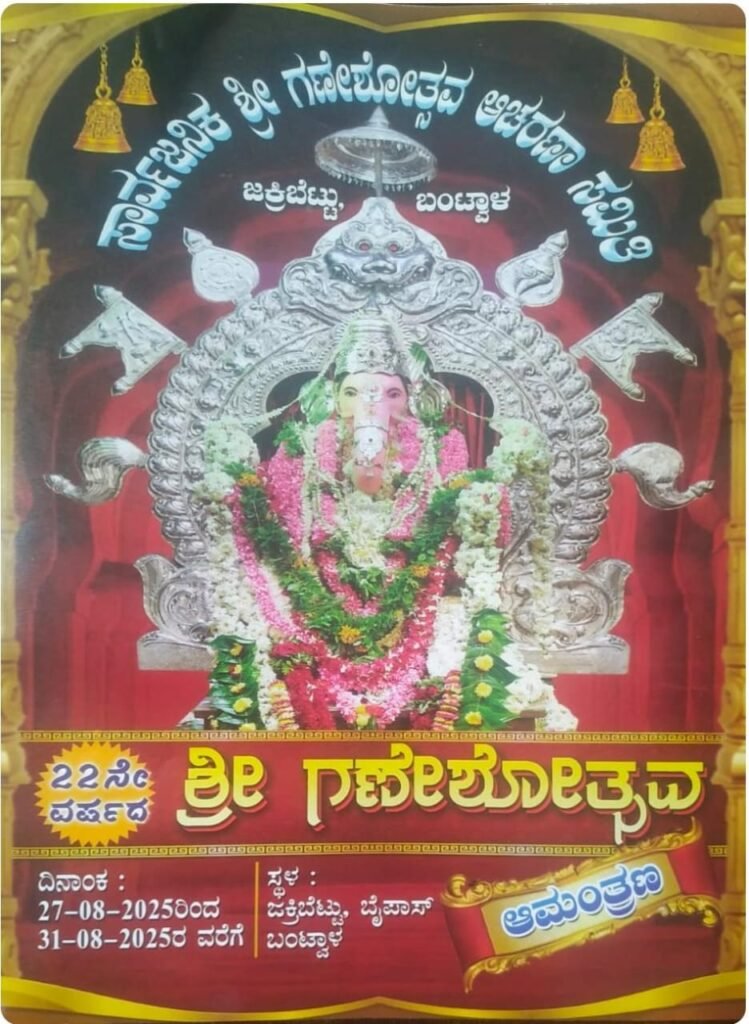 ಬಂಟ್ವಾಳ: ಸಾರ್ವಜನಿಕ ಶ್ರೀ ಗಣೇಶೋತ್ಸವ ಆಚರಣಾ ಸಮಿತಿ ಜಕ್ರಿಬೆಟ್ಟು ಬಂಟ್ವಾಳ ಇದರ ಆಶ್ರಯದಲ್ಲಿ 22ನೇ ವರ್ಷದ ಶ್ರೀ ಗಣೇಶೋತ್ಸವ ಆಗಸ್ಟ್ 27ರಿಂದ 31ರವರೆಗೆ ನಡೆಯಲಿದೆ ಎಂದು ಸಾರ್ವಜನಿಕ ಶ್ರೀ ಗಣೇಶೋತ್ಸವ ಸಮಿತಿ ಗೌರವಾಧ್ಯಕ್ಷ, ಮಾಜಿ ಸಚಿವ ಬಿ. ರಮಾನಾಥ ರೈ ಅವರು ಹೇಳಿದರು.