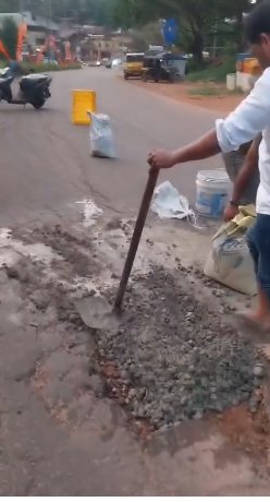 ಪುತ್ತೂರು : ಪುತ್ತೂರಿನ ಕೂರ್ನಡ್ಕ ಎಂಬಲ್ಲಿ ನಗರದ ಮಧ್ಯಭಾಗದ ಪ್ರಮುಖ ರಸ್ತೆಯಲ್ಲಿದ್ದ ಬೃಹತ್ ಹೊಂಡವೊಂದನ್ನು ಸ್ವತಃ ತಮ್ಮ ಖರ್ಚಿನಲ್ಲಿ ಸಾಮಗ್ರಿ ತರಿಸಿ, ತಾವೇ ಕಾಂಕ್ರೀಟ್ ಕಲಸಿ ಮುಚ್ಚುವ ಮೂಲಕ ಮಾದರಿ ಕೆಲಸ ಮಾಡಿದ್ದಾರೆ.